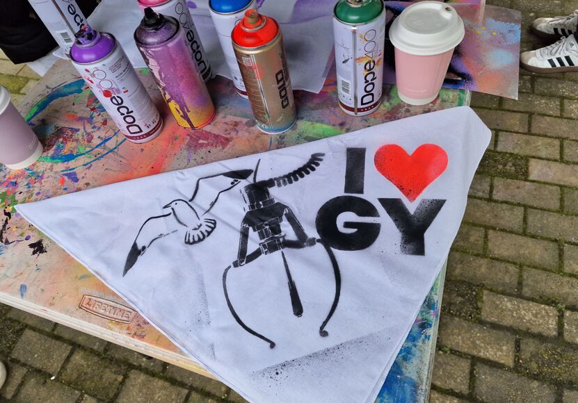 The Printmaking Workshop invites students to join STANE in designing bespoke garment fabric that represents Great Yarmouth in all its glory. Using stencils of iconic landmarks, acrylic paints, spray paints, and more, participants will create a tapestry that will later be transformed into sweatshirts and hoodies for the Out There Festival. Additionally, attendees will have the opportunity to design and customise tote bags and bandanas to take home as a memento of their creative efforts.