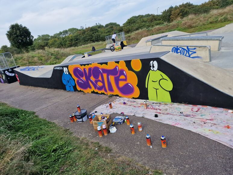 STANE, whose name stands for "Still Trying All Nearest Exits," is a graffiti artist born and raised in Great Yarmouth. Known for their bold, eye-catching cartoons and detailed line work, STANE's art adds a dynamic visual element to the urban landscape. Their pieces often explore themes relevant to the local community, offering a unique perspective on the town.