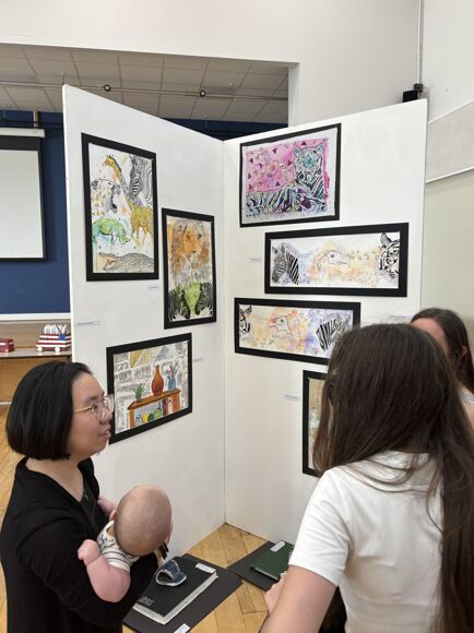 The exhibition was more than just a showcase—it was a learning experience. Throughout the week, all pupils took their art lessons into the exhibition space, using the GCSE portfolios as live case studies. This hands-on approach allowed younger students to learn directly from their peers, sparking conversations about technique, inspiration, and the power of visual storytelling.